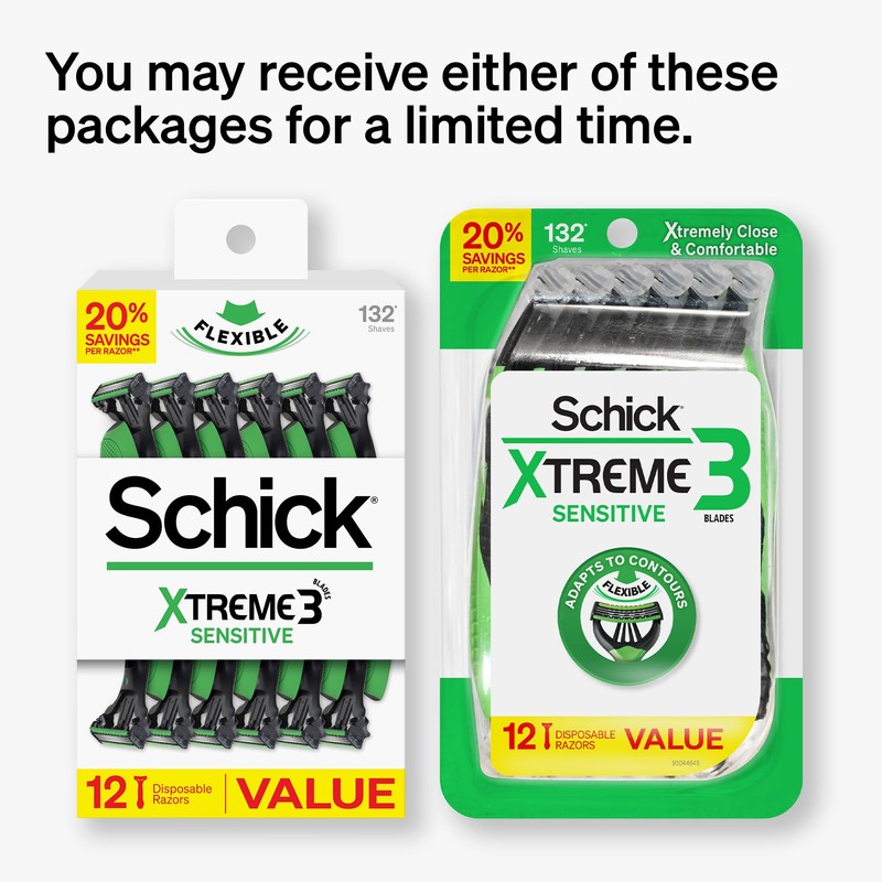 - Long-lasting blades – Get up to 11 shaves with each Schick Xtreme3 Sensitive Razor for a total of up to 132 shaves per pack.