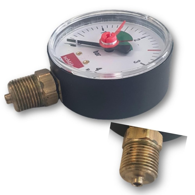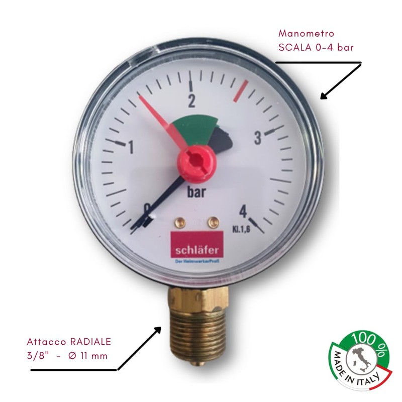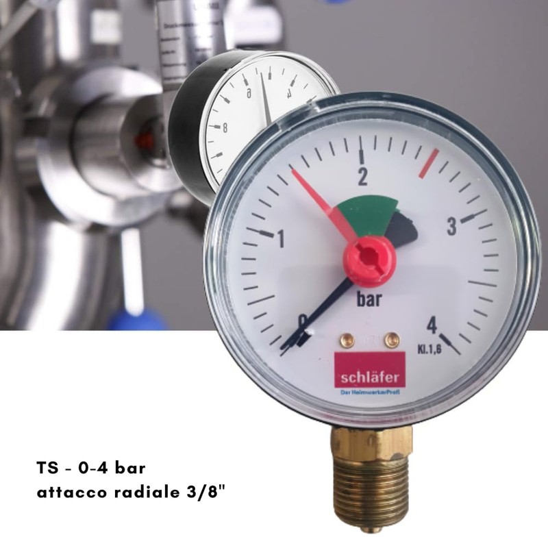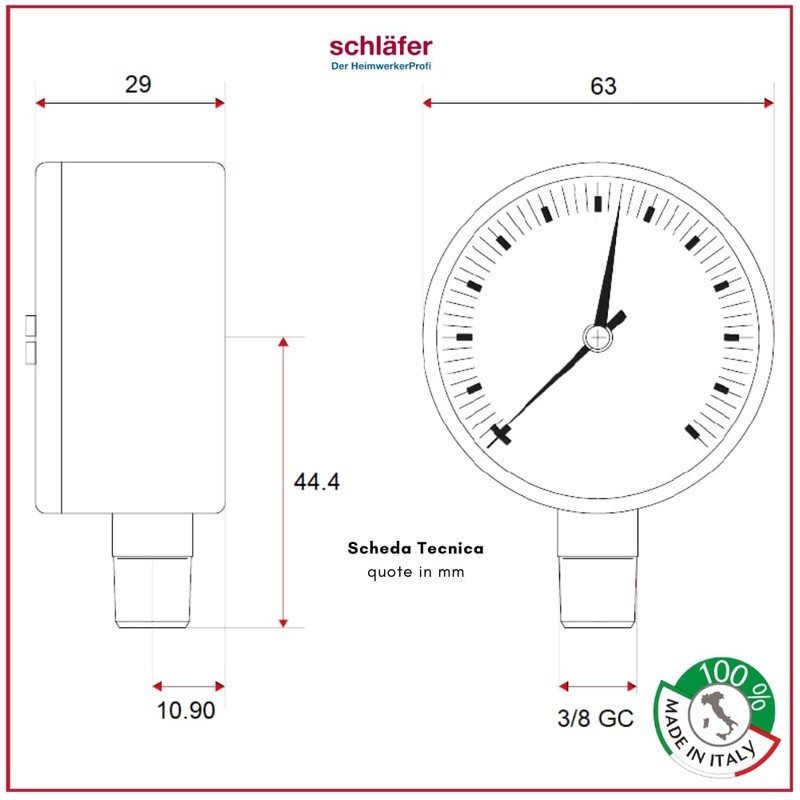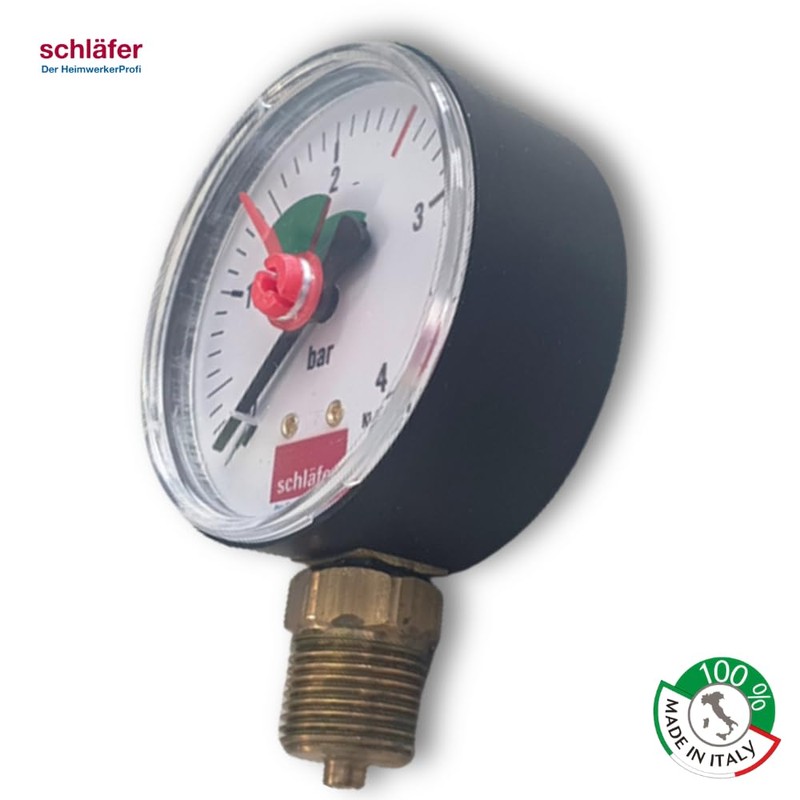 Schläfer 0930161 | Vertical Hydraulic Pressure Gauge Radial Connection 3/8 Inch Scale 0-4 Bar 63 mm for Air-Water Heating Systems Hydraulic Pressure Indicator