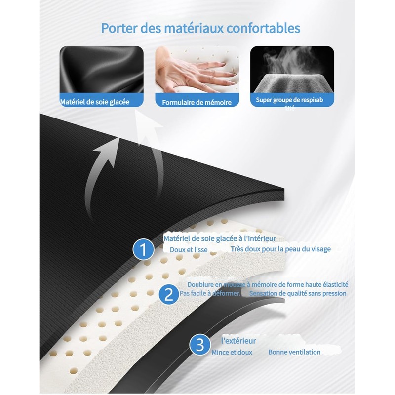 - 【Verbesserte 3D-konturierte Augenmaske】Eisseidenstoff, atmungsaktiv und seidig, mit gutem Drapieren und guter Formbeständigkeit. Rückfedernder Memory-Schaum, weich und bequem.