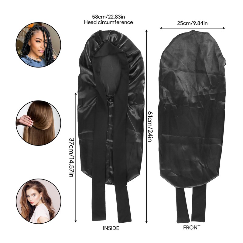 - EXTRA GROSSE KAPAZITÄT: Mit einer Größe von 61 x 25 cm kann diese Seidenhaarmütze für lange Haare lange Haare und Zöpfe vollständig abdecken und schützen, geeignet für alle Arten von langen Haaren.