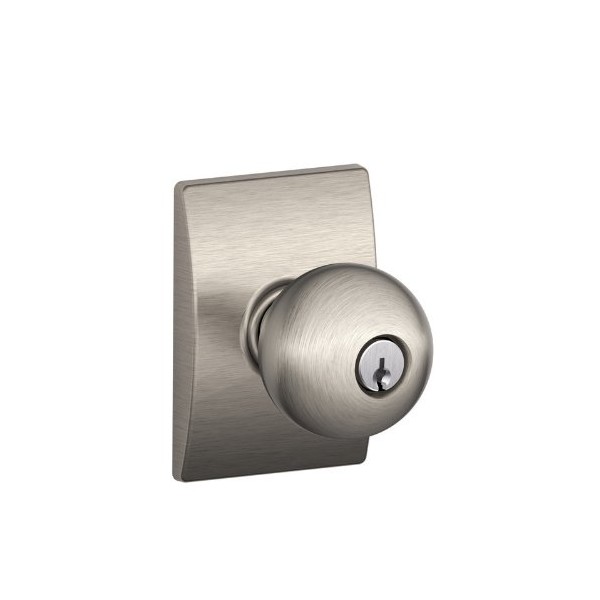 Schlage F51AORB619CEN Satin Nickel Orbit Keyed Entry F51A Panic Proof Door Knob with Centry Rosette
