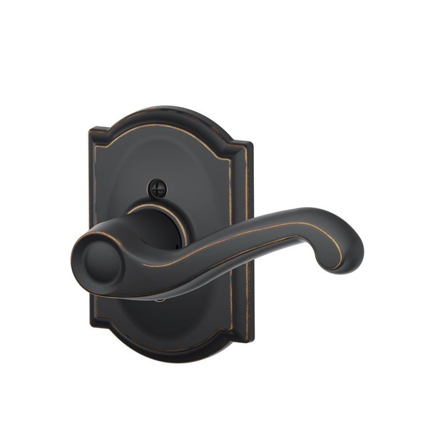 Schlage Lock Company Flair Right Handed Lever with Camelot Trim Non-Turning Lock, Aged Bronze (F170 FLA 716 CAM RH)