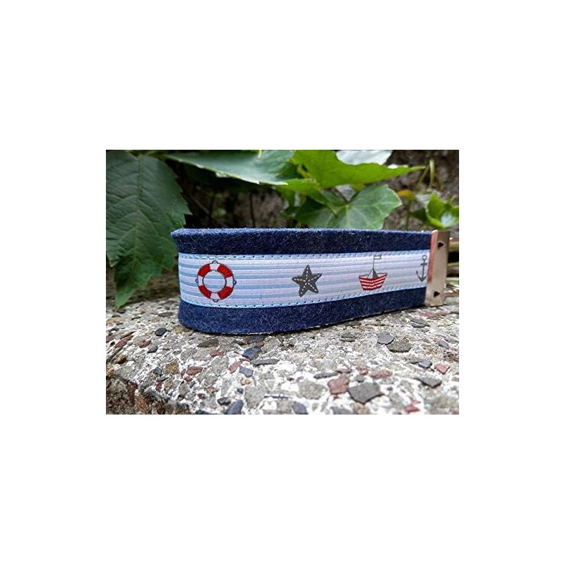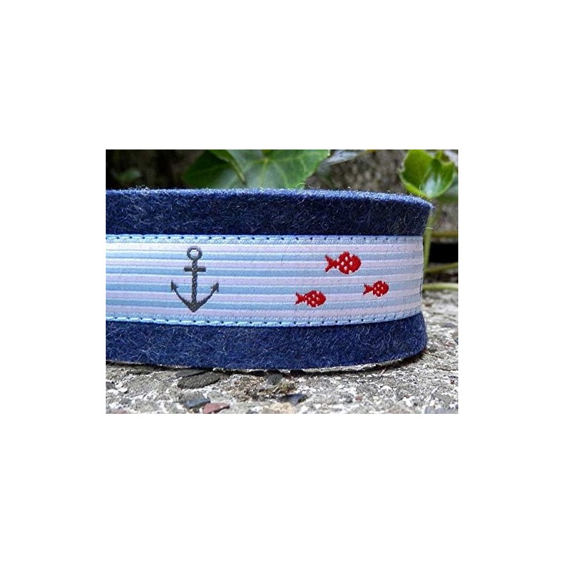 Schlüsselanhänger Schlüsselband Wollfilz dunkelblau Webband Ahoi hellblau rot gestreift maritim !