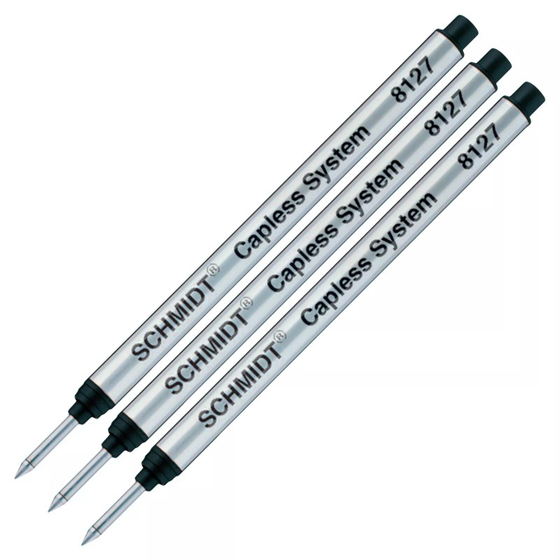 Schmidt 8127 Long Version Capless Rollerball refill. This refill is 4.31" long and features a 0.7mm Medium Point. Schmidt Capless System is newly developed for the most smooth and elegant writing. This system combines the individual writing character of a fountain pen with the problem-free handling comfort of a ball pen.
