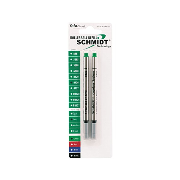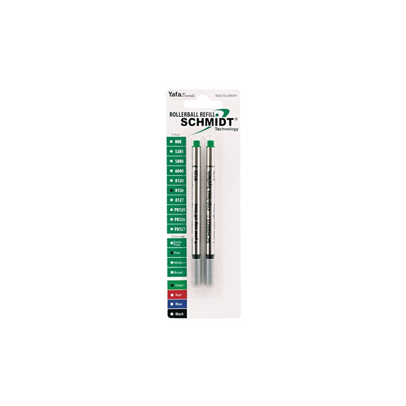 Schmidt 8126 Long Capless Rollerball Refill Fine Point 0.6mm, Green, 2 Pack Blister (SC58126)