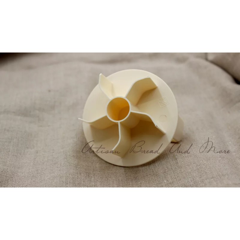 Use the stamp to create the typical Kaiser roll pattern on bread rolls.