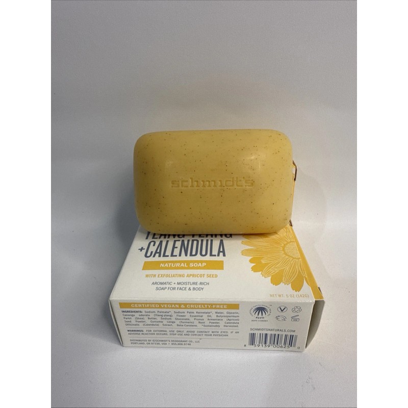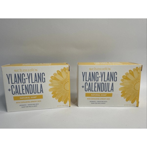 2 Pack Schmidt's Ylang-Ylang Calendula Natural Soap Exfoliating Apricot Seed 5 oz.