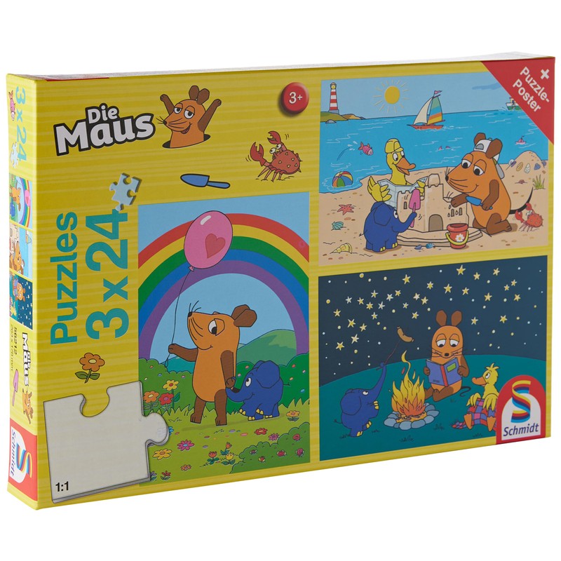 Schmidt Spiele 56212 Die Maus, Gute Freunde, 3x24 Teile Kinderpuzzle, Blau