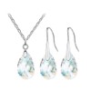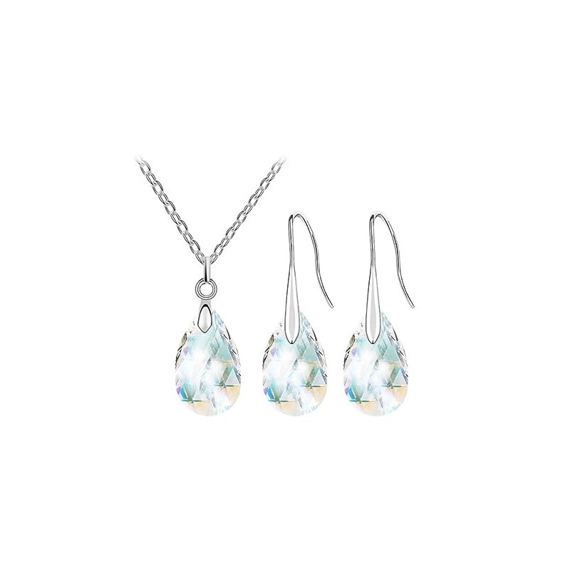 - Schmuckset Swarovski Stein Kette Ohrhänger Tropfen weiß Glitzer
