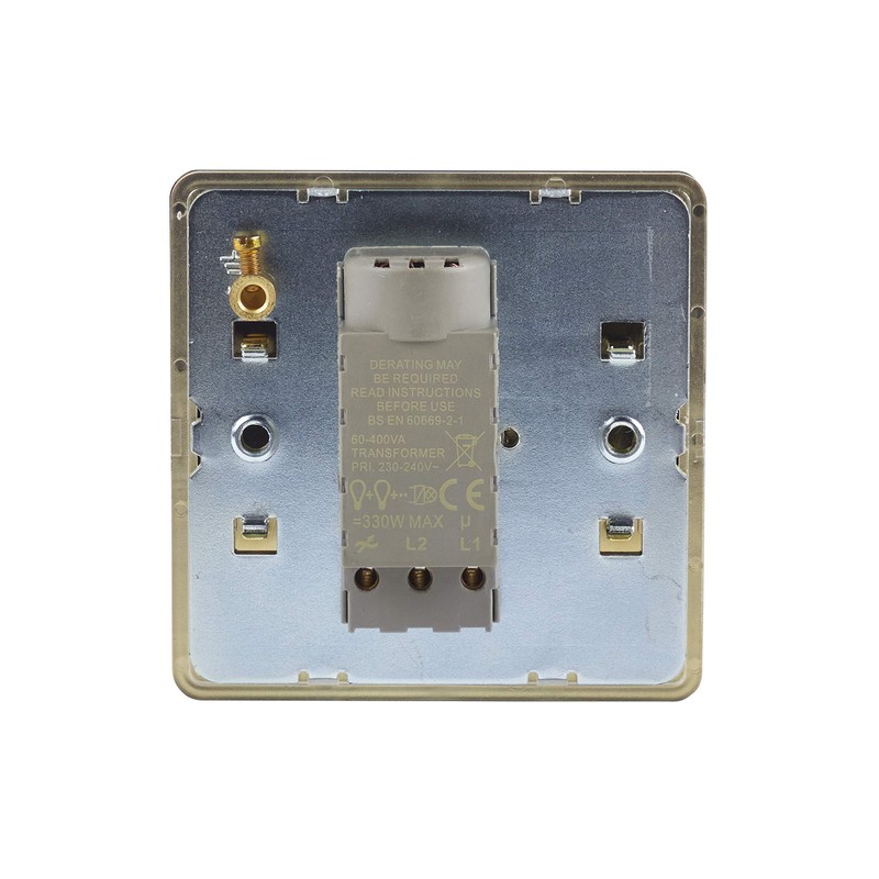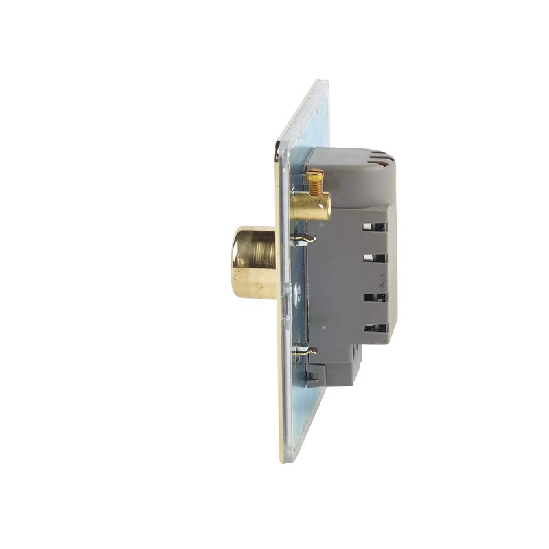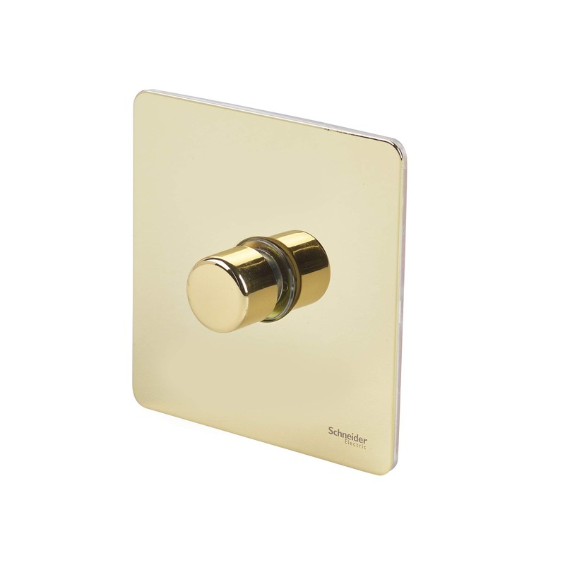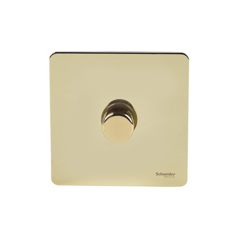 Schneider Electric Ultimate Screwless Flat Plate - Single 2 Way Dimmer Light Switch, Main and Low Voltage, 400W/VA, GU6412CPB, Polished Brass