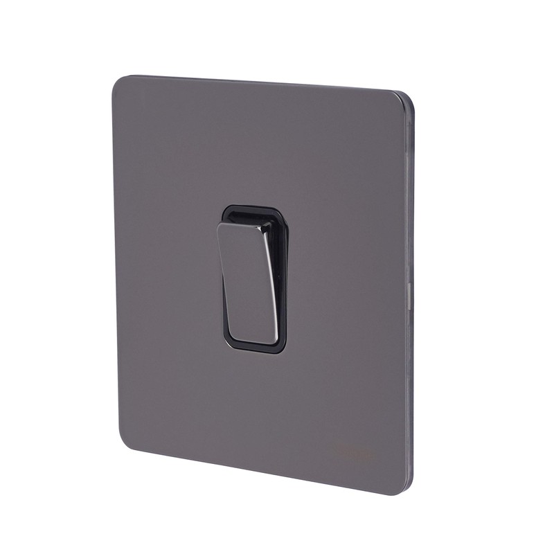 Schneider Electric Ultimate Screwless Flat Plate - Single Light Switch Double Pole, 20AX, GU2410BBN, Black Nickel with Black Insert