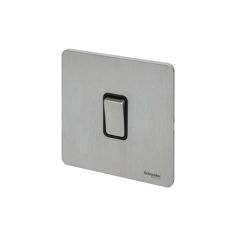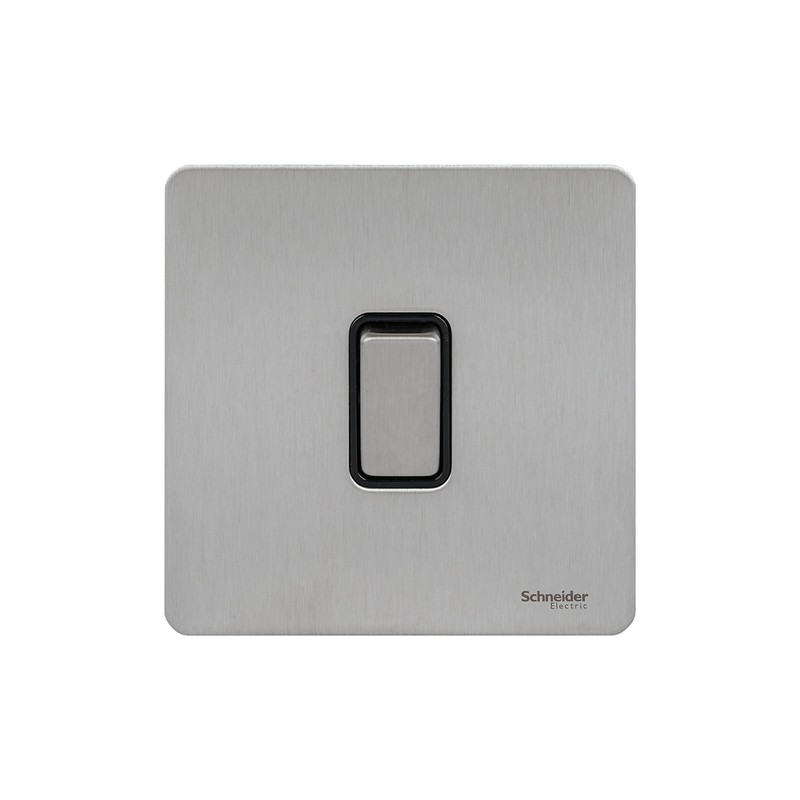 Schneider Electric Ultimate Screwless Flat Plate - Single Rocker 2 Way Light Switch, Single Pole, 16AX, GU1412BSS, Stainless Steel with Black Insert