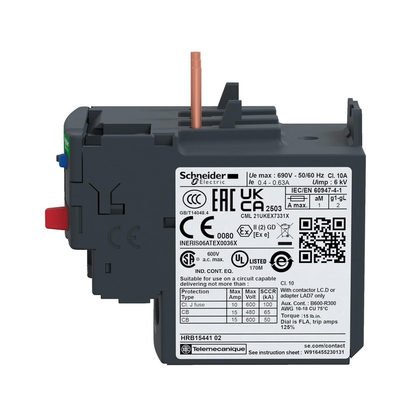 Schneider LRD04 Class 1 TeSys D Overload Relay, White, 0.4-0.63 A