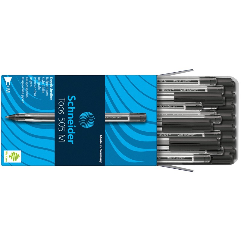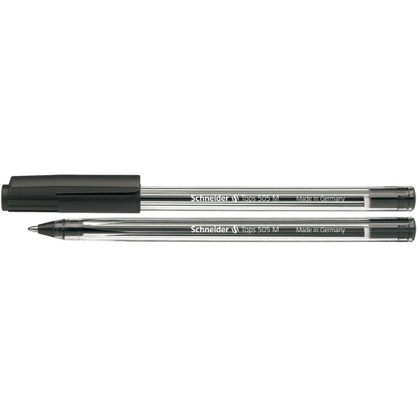Schneider Tops 505 Ballpoint Pens with Clip Cap and Stainless Steel M Tip Pack of 50 Black