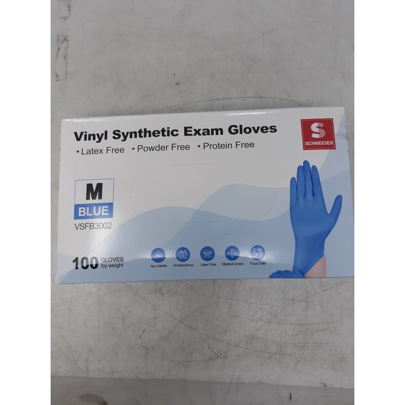 ✔ (1) Box of 100 Schneider Vinyl Synthetic Exam Gloves - Medium - Blue