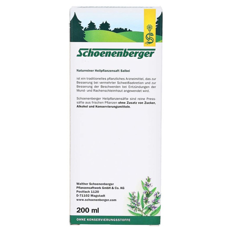 - Schoenenberger Natural medicinal plant juice sage is made from fresh medicinal sage.