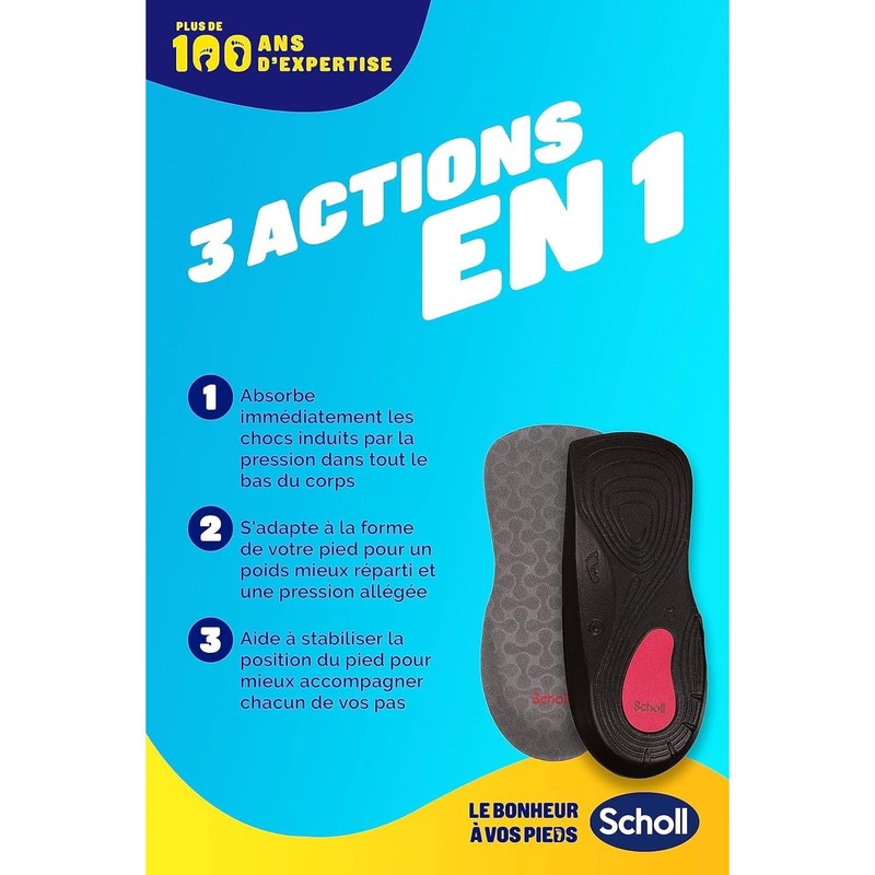 Scholl TS pain relieving insoles help relieve pain in knees, heels and legs caused by walking. They have a so-called motion control structure: the right shape and the combination of suitable materials provide additional support for certain areas of the foot. They offer multiple effects: - Instantly absorb the impact by applying pressure on the lower body. - Adapts to the contour of the feet to distribute weight more evenly and reduce pressure. - Stabilise the foot position to support your walking. The reinforced heel part works with arch support to reduce lower limb pressure and relieve knee pain. Systematic arch support helps reduce excessive slipping of the foot inward, which can lead to painful pressure on the heel. They fit in most shoes. These insoles have a length of 3/4, starting from the heel to below the arch to reach the beginning of the toes.