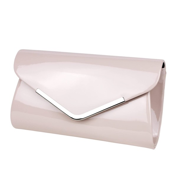 Schompi Vintage Women's Patent Evening Bag Clutch Bag with Removable Shoulder Chain Bag, beige