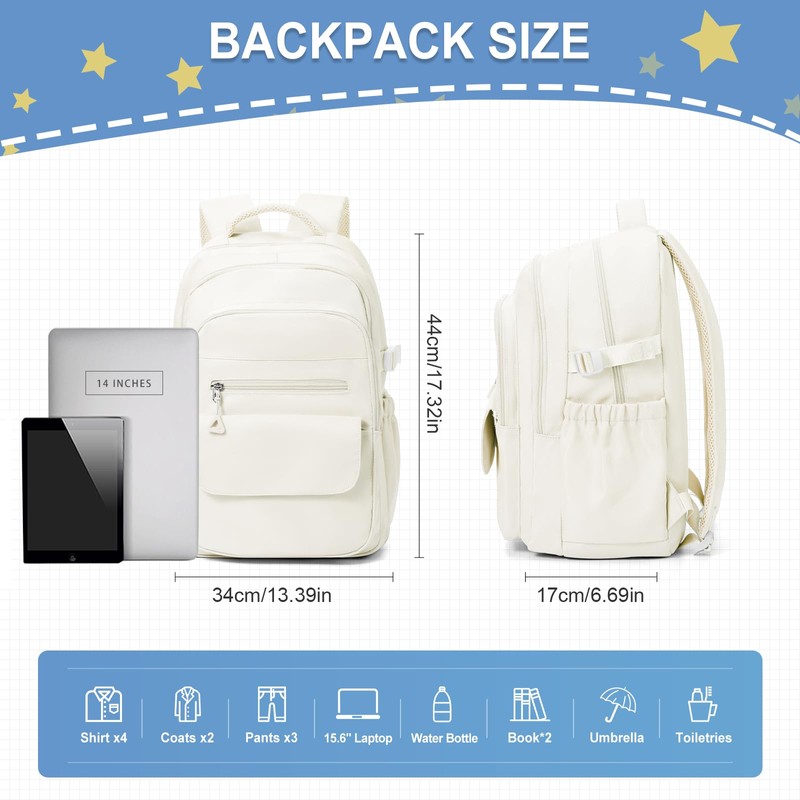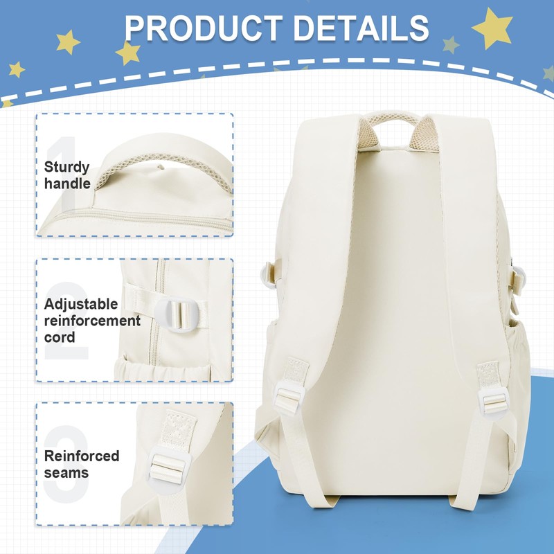 School Backpack For Teen Girls Cute College Backpack For Women Men Waterproof Travel Rucksack Casual Daypack,High School Bag Boy Kawaii Students Bag(Beige)