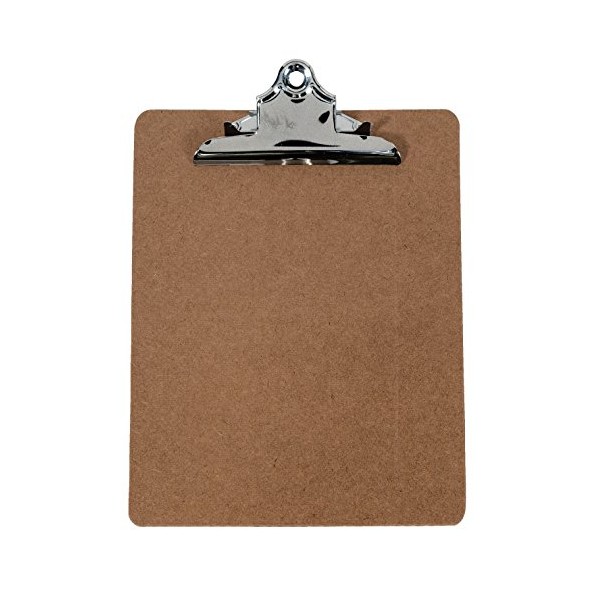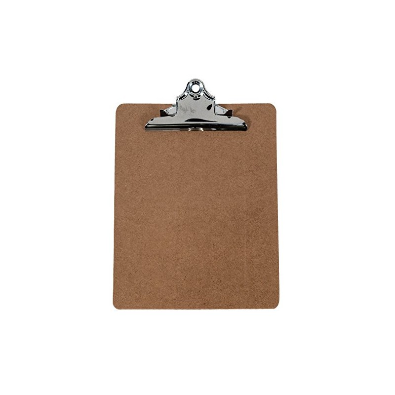 Sturdy, smooth hardboard. Finished on both sides with beveled edges for safety. Clip has bright nickel finish. Provides positive grip for pads, forms and sheets. Letter Size, 9\ x 12-1/2\". Beveled Edges For Safety. Letter size."