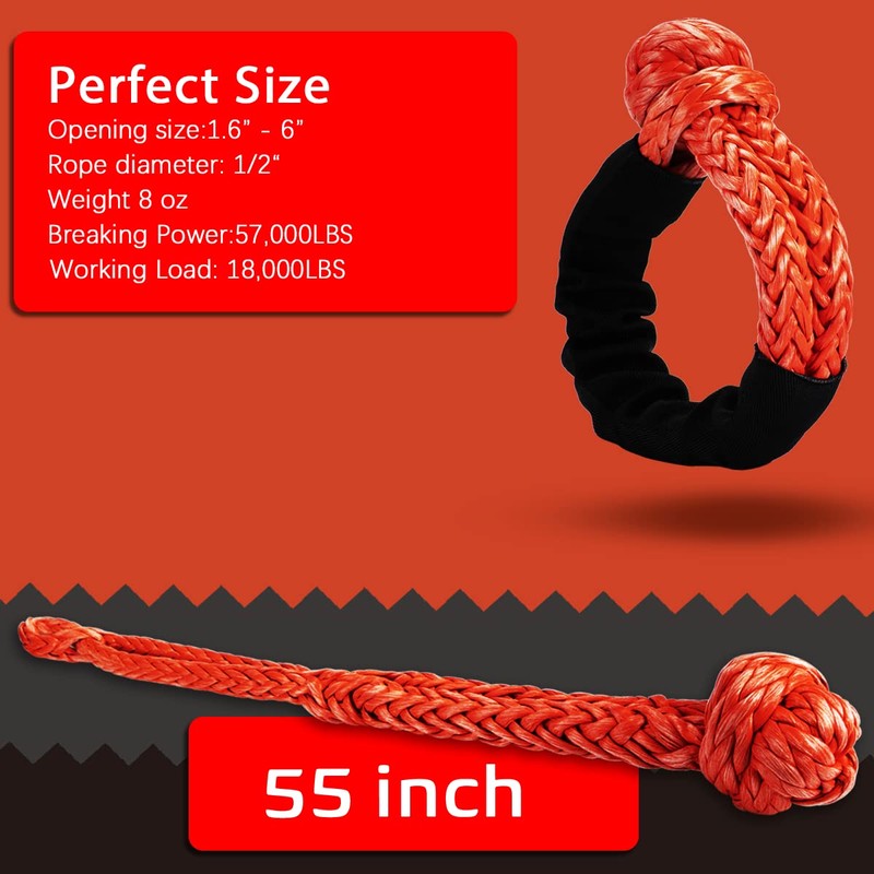 - ใ๐๐ญ๐ซ๐จ๐ง๐ ๐ญ๐ก๐๐ง ๐๐๐ญ๐๐ฅใ โโ Soft Shackle made with UHMWPE and Weaved to a total thickness of 1/2'. Our product can reach a breaking power of Amazingly 57,000LBS. This product is strong enough to handle any SUV, TRUCK or ATV recovery mission.