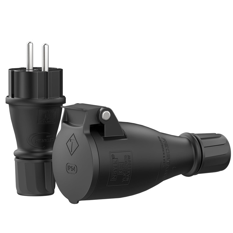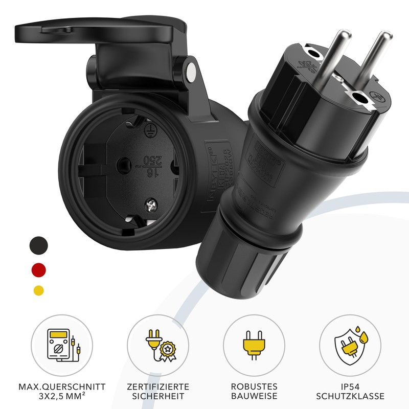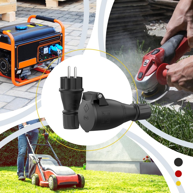 Schuko Plug & Coupling Set - Robust IP54 230 V | Protective Contact Plug & Coupling | Rubber/Plastic Combination | Ideal for Outdoor Use | Safe and Durable Electrical Connection