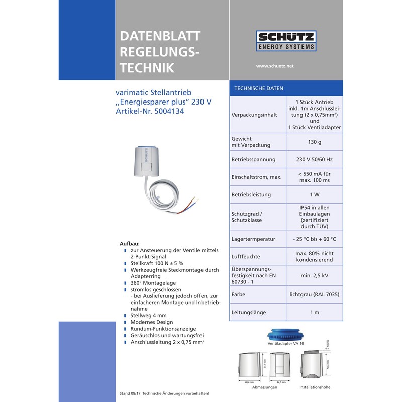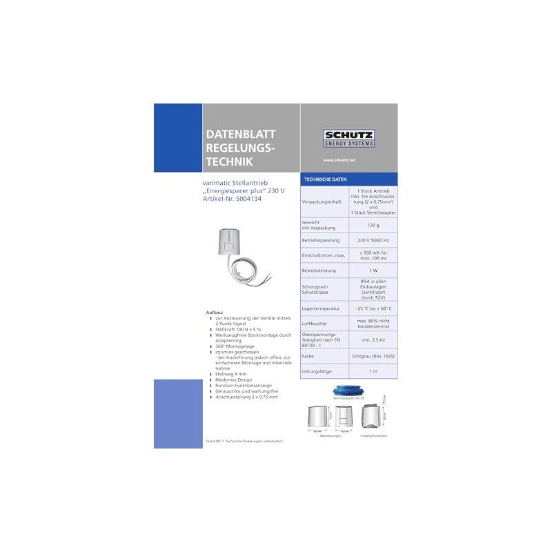 Schütz varimatic actuator underfloor heating 230 V regulator actuating force 100 N/1 W