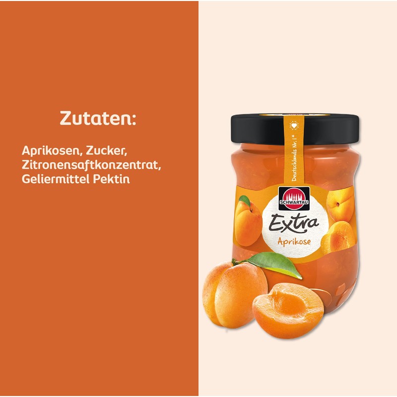 - The best fruits, gentle processing and our delicious recipes make the Schwartau Extra Apricot the first extra of the day!