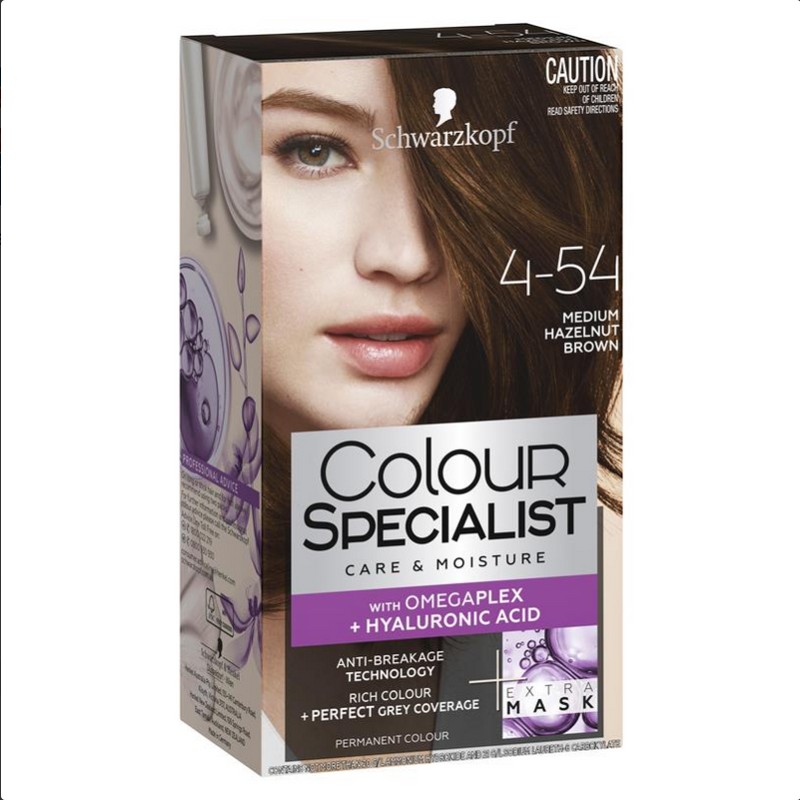 Schwarzkopf Colour Specialist 4.54 Medium Hazelnut Brown contains Omegaplex which protects & reinforces against damage, strengthens micro-bonds inside hair fibre and offers extra long-lasting colour - the perfect grey coverage.