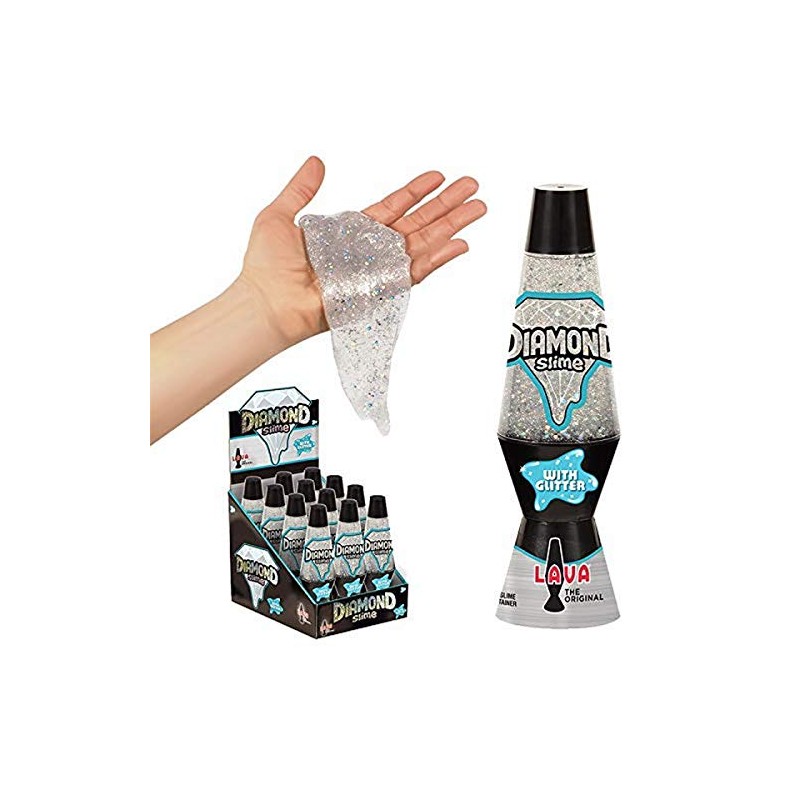 - Glittery slime in a container shaped like an original Lava Lamp. Take off the top and pour it out to see this glittering slime ooze out of the container