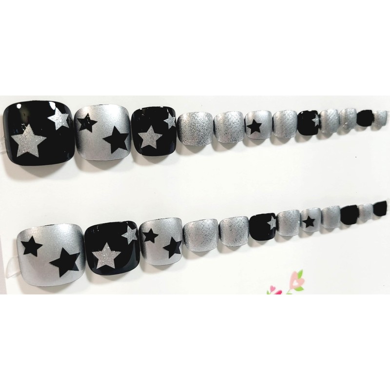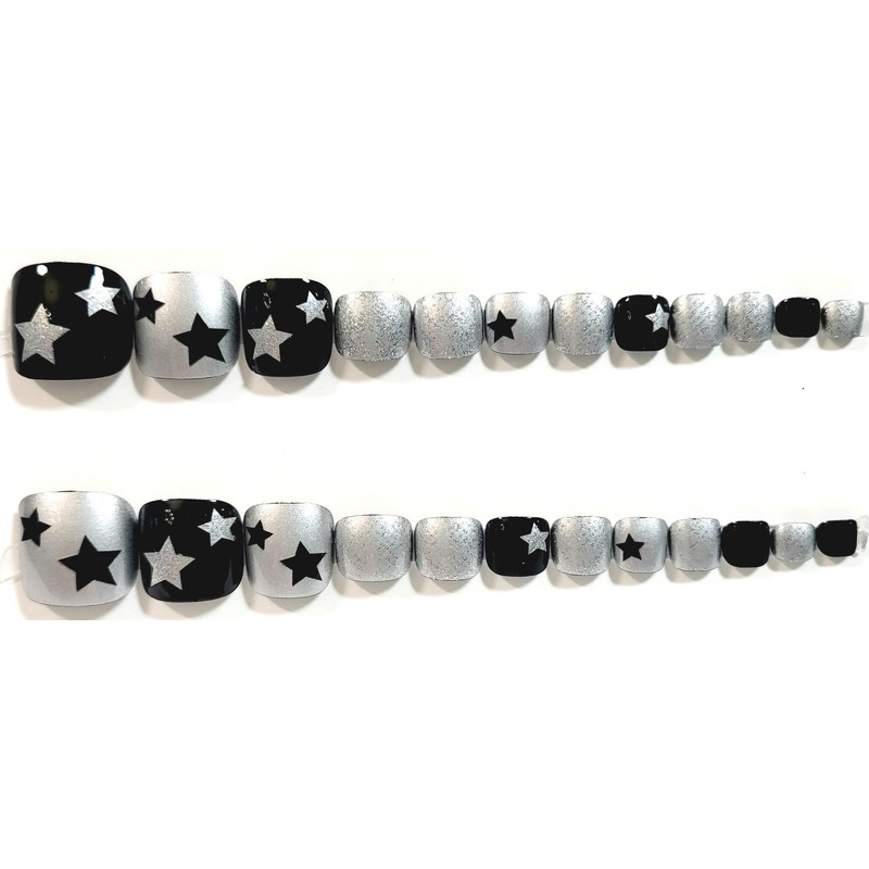 Sci-Fi Love Glossy Press-On Nails - 24 Pieces - Artificial Nail Kit (Black, Silver, Toenail)