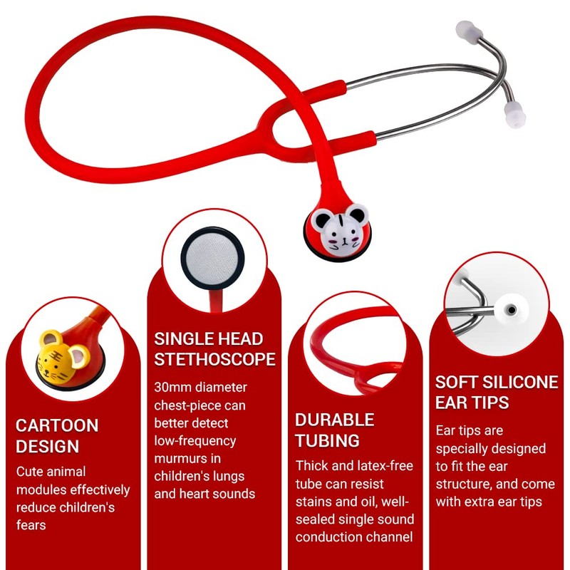 SCIAN HS-30Q Stethoscope for Children with Multiple Colours, Cartoon Animals Design Stethoscope for Clinician, Nurse, Home Use (Red)