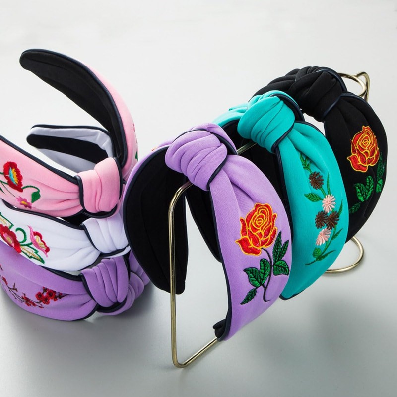 scicent Hair Band Black Knotted Headband with Floral Embroidery Refined Lightweight Headband Beautiful Headband Wide Fashion Hair Accessories for Women and Girls - 26310