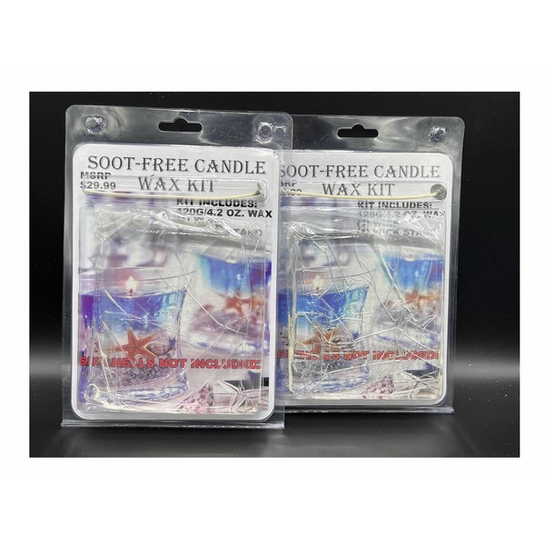 - 2 SETS of SMOKELESS DIY CANDLE KIT -, Each set comes with 120 grams (4.2-ounce) of Smokeless Crystal Wax, one 6" wick, and a wick stand.