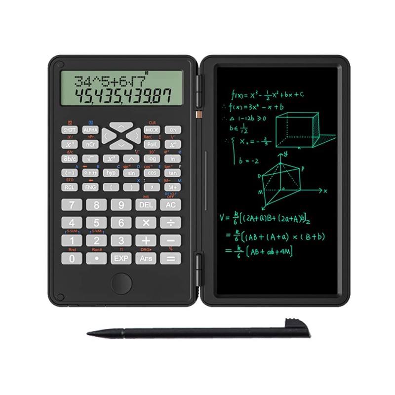 - Scientific Calculator with Notepad: 6-inch large screen writing pad with and a stylus on the side of flip place, which can effectively save your pen and paper, and you can calculate and record what you want.