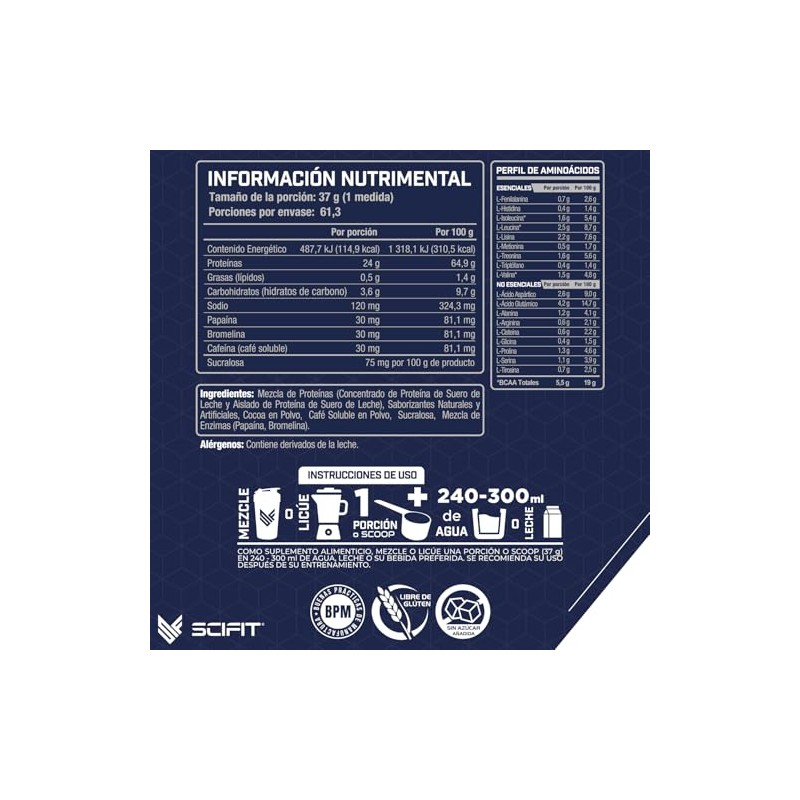 🌟 ⭐ Scifit | Proteína Whey | 24 g de Proteína | 100% Whey Protein | 61 Servicios | Sabor Moka| Post Entrenamiento | Bajo en Carbs | 5lb (2,27 kg) ⭐ 🌟