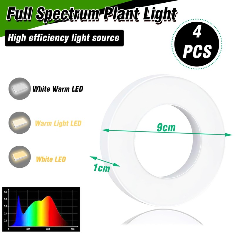- Easy to install: you can attach it anywhere you want to take care of plant lighting, e.g. on a trellis, a wall, a cabinet, etc. Round plant lights are small, wide range of light and do not take up much space. We supply with adhesive tape so you can hang or stick the plant lights to save space