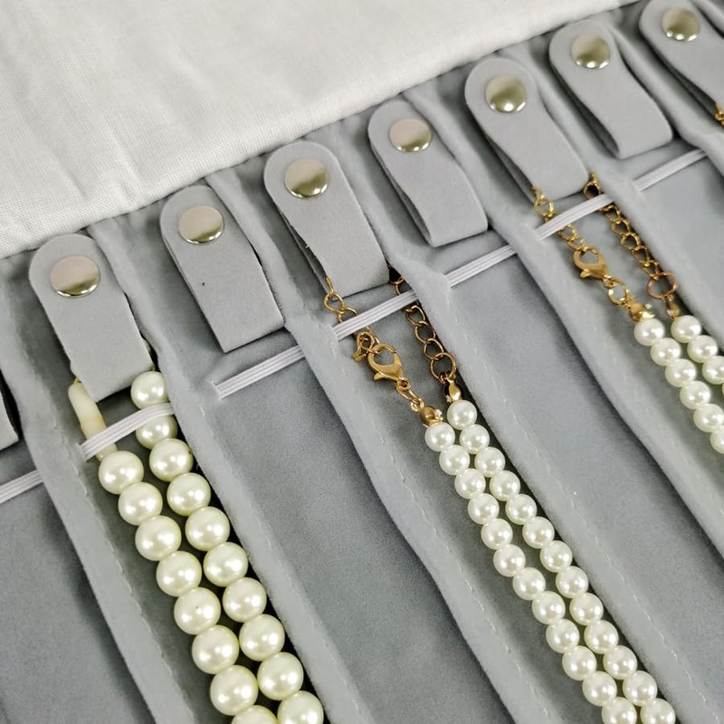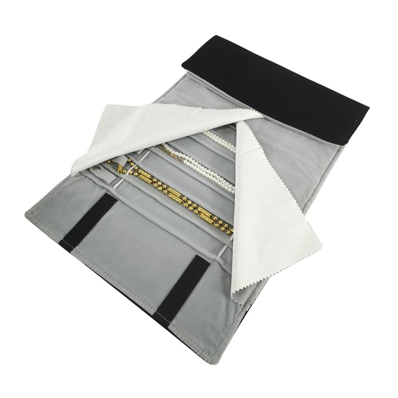 SCIKHEFT ポータブルジュエリーロール 絡まない安全ネックレス トラベルストレージバッグ ディスプレイホルダー チェーン16個 (ブラックベルベット) (BLACK GRAY)