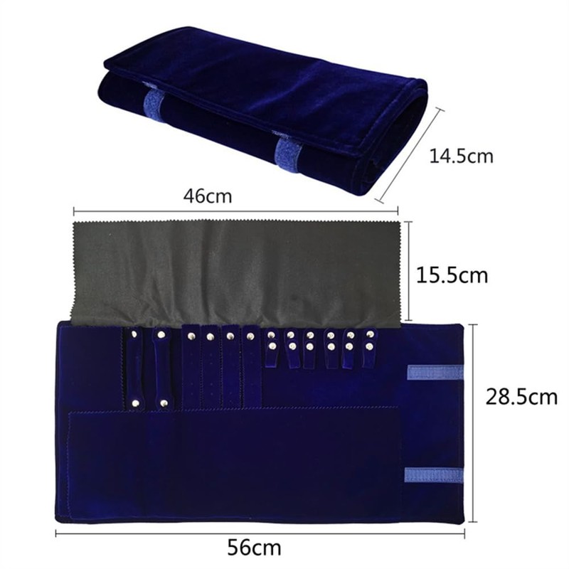 SCIKHEFT Travel Roll Bag Jewelry Display Storage Organizer Multi-function Velvet Pouch (Blue)