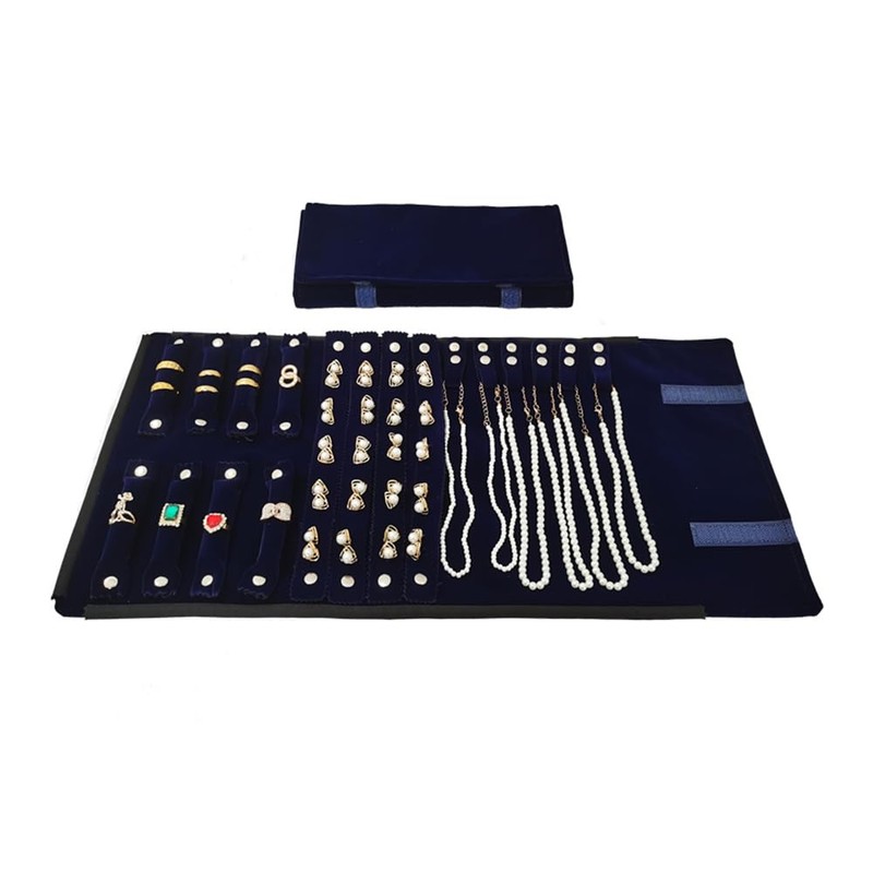 Introducing our innovative and elegant Portable & Multifunctional Jewelry Organizer, a perfect fusion of functionality and style. Meticulously designed, this jewelry roll unfolds to a generous size of 22 × 11 inches and folds down to a compact 11 × 5.5 inches, making it incredibly easy to slip into your handbag or suitcase. Whether you're attending an exhibition or embarking on a long-distance journey, this organizer ensures all your precious jewelry is securely and conveniently packed. With scientifically planned interior space, our jewelry organizer caters to all your daily jewelry storage needs. Its thoughtful design allows you to store a wide array of jewelry pieces, from delicate rings and earrings to an assortment of necklaces. Thanks to its compact footprint, you'll never have to worry about cluttered drawers or misplaced favorite accessories again. But what truly sets our jewelry organizer apart is its at-a-glance and organized storage feature. Featuring a partitioned storage design, it lets you instantly see the location of all your jewelry. This means no more fumbling through drawers or tangled necklaces – simply glance inside, and you'll immediately spot the piece you want to wear. Moreover, the organizer's design also protects your jewelry from damage, preserving its original shine and preventing scratches and dents. Crafted from soft yet durable velvet material, our jewelry organizer provides all-around protection for your precious accessories. The velvet lining is gentle on your jewelry, preventing scratches and bumps, even when you're on the go. This ensures your jewelry remains safe and secure, ready to be worn and admired whenever you need them. Yet, we didn't stop at just great design and materials. We also wanted to ensure our jewelry organizer was flexible enough to meet your diverse needs. That's why we made the interior components removable and adjustable. Whether you have a small collection of delicate pieces or a large assortment of bold accessories, you can customize the organizer to fit your specific requirements. This means your jewelry will always be organized, making it easy to find and wear whatever you're in the mood for. If you're looking for a thoughtful and elegant gift, our jewelry organizer is the perfect choice. Its beautiful design and practical functionality make it a delightful surprise for friends, family, or partners.