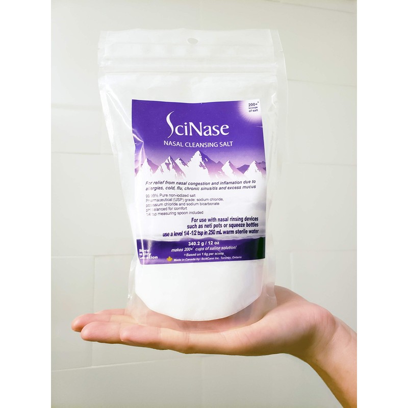 SciNase Nasal Cleansing Salt, 12 oz, Made in Canada, Makes 200+ cups of saline