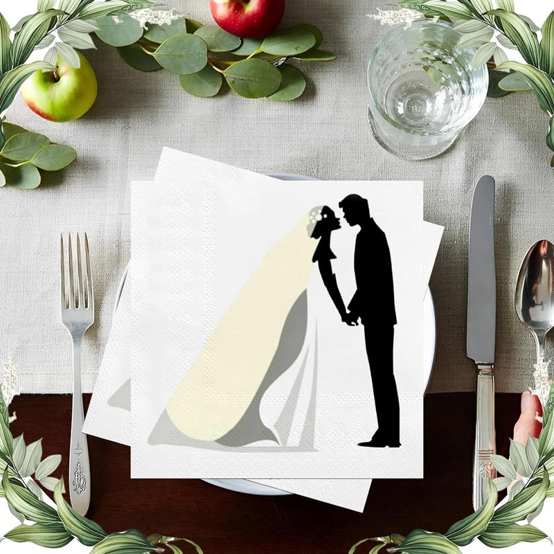 Package contents: the product contains 60 napkins, beautiful that you are there, dimensions approx. 33 x 33 cm. Dimensions after folding approx. 16.5 x 16.5 cm. High-quality material: wedding napkins made of high-quality paper, environmentally friendly and non-toxic, these are each 3-ply, which are thicker, stable and soft than other napkins, party table decoration: wedding napkins these pretty will attract everyone's attention and all arriving guests will smile at this sight "MR" & "MRS" design: Bride in her wedding dress in her and the groom kiss intimately and step hand in hand with the blessing of the guests into marriage. Versatile use: these napkins can be used to welcome any guest sitting at the table, suitable for kitchen, table decoration wedding and daily use. Perfect wedding decoration table.