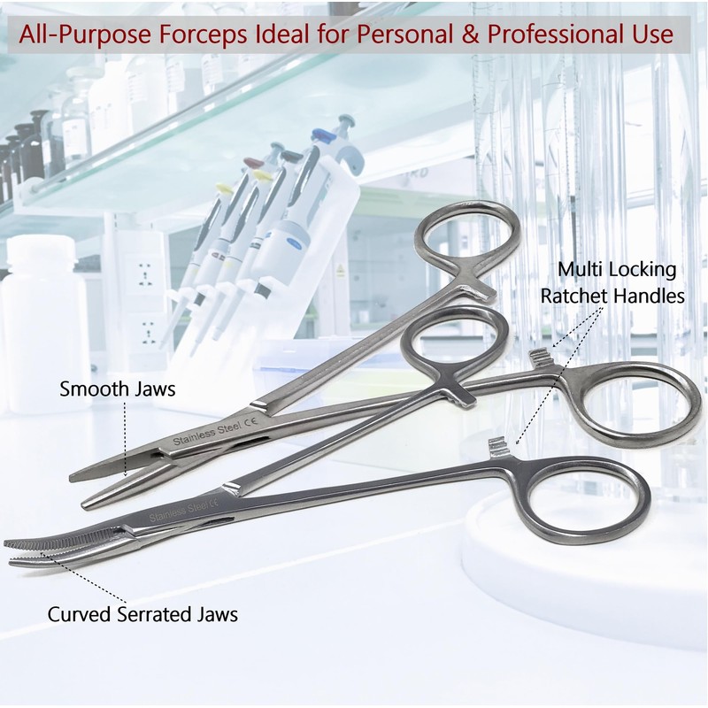 - Resists all wear and tear that comes along with repetitive usage. These reusable all purpose forceps, scissors, and tweezers come in retail gift packaging.