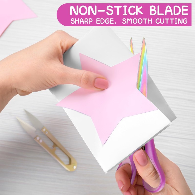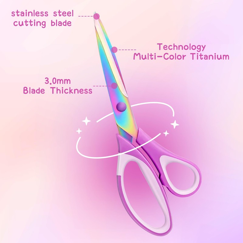 - [Coloured Titanium Coating]: Designed for adults, these craft scissors for adults feature a coloured titanium coating, making them rust-resistant and perfect for cutting fabric, paper, and cardboard.