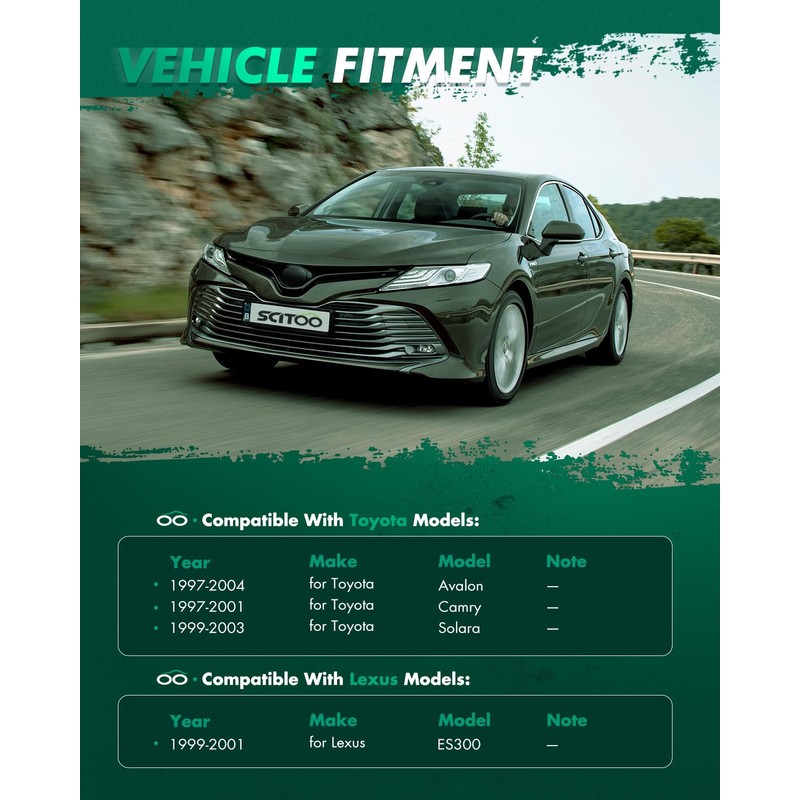 • 【Suspension Kit Fitment】1997-2001 for Toyota Camry, 1997-2004 for Toyota Avalon, 1999-2003 for Toyota Solara, 1999-2001 for Lexus ES300