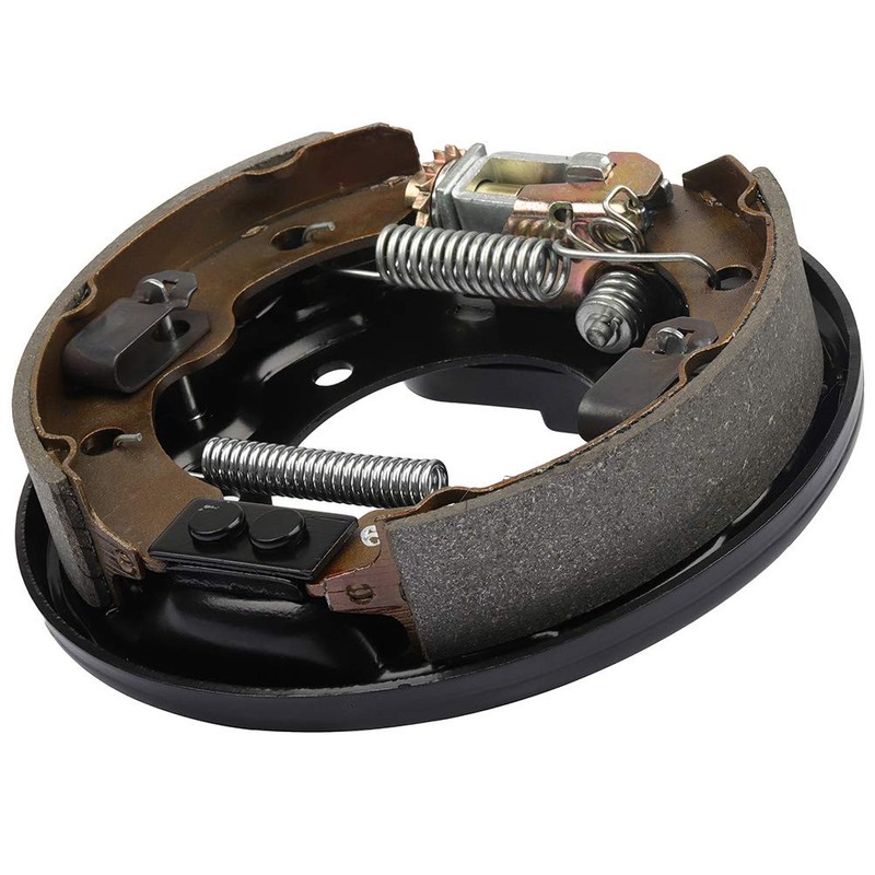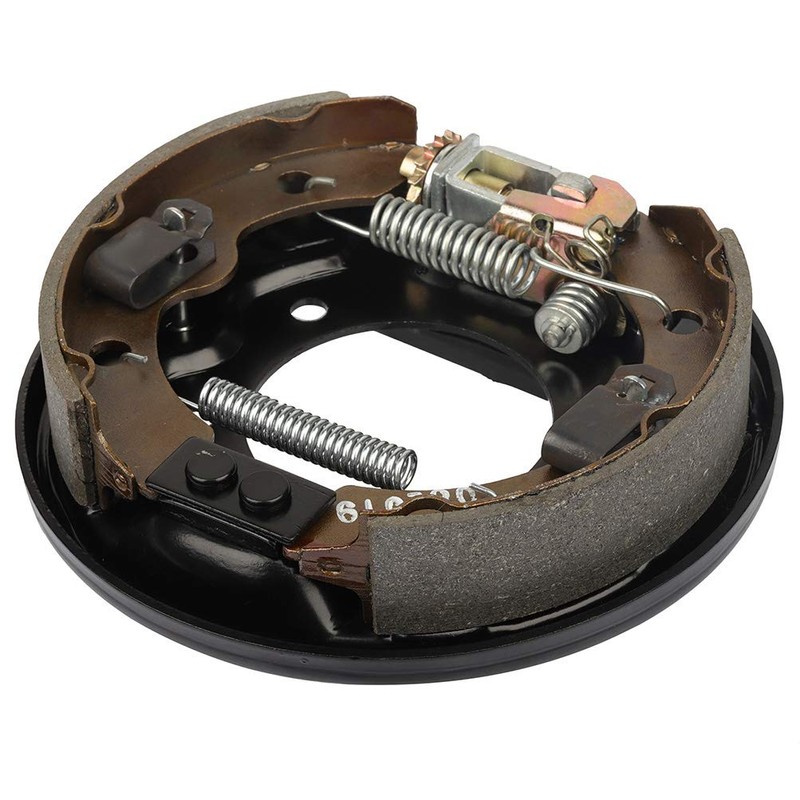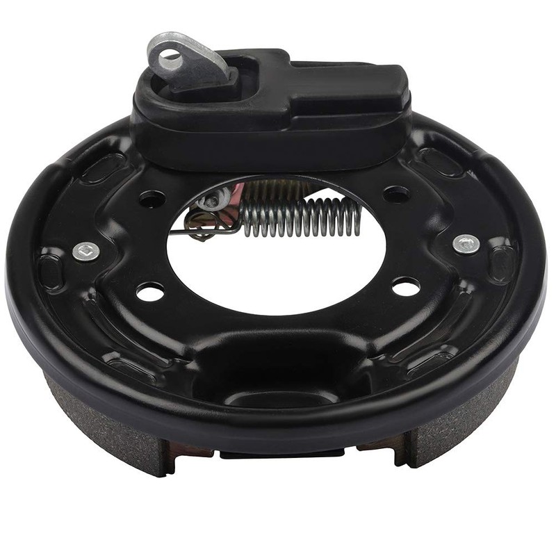 Includes backing plate, adjustable mechanism, brake shoes with retainers, springs, activating lever