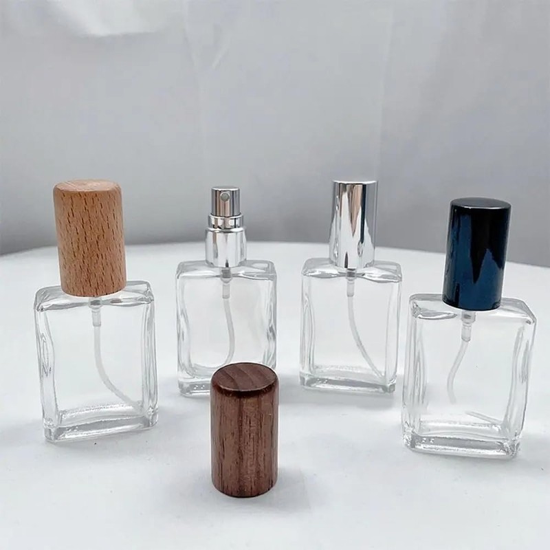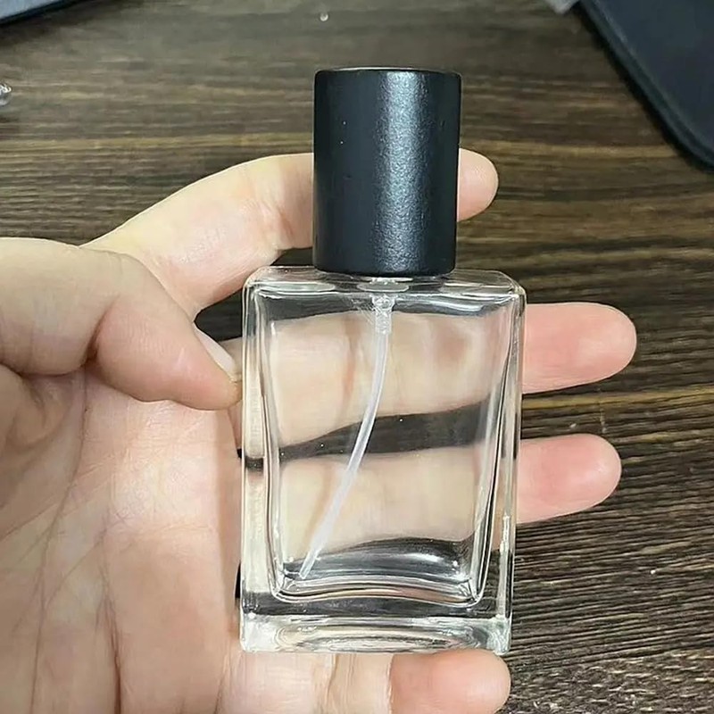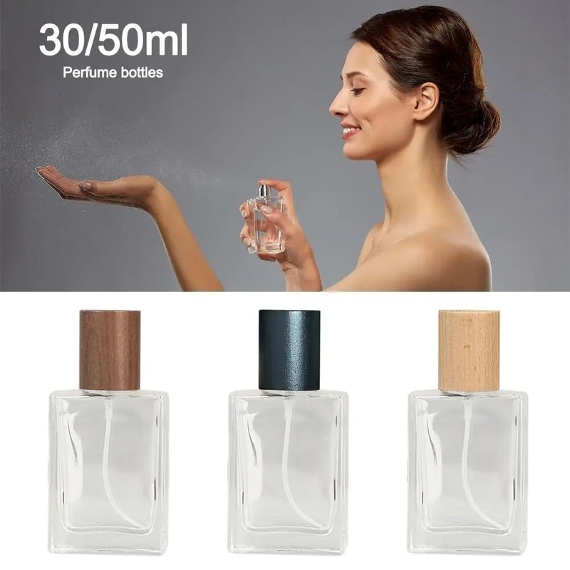 SCOLAND 30/50ml Perfume Bottle Glass Refillable Perfume Atomizer Bottle with Beech Lid Large Capacity Cosmetic Container Travel (Black-30ml)