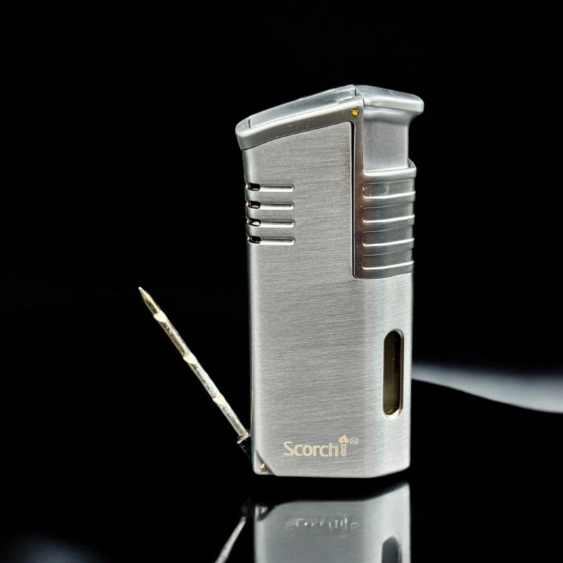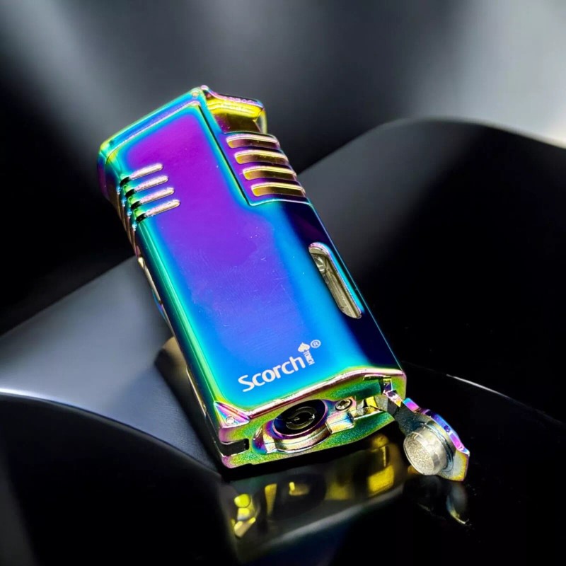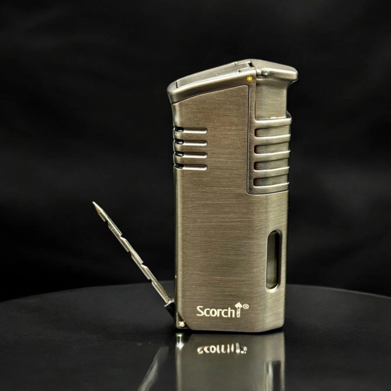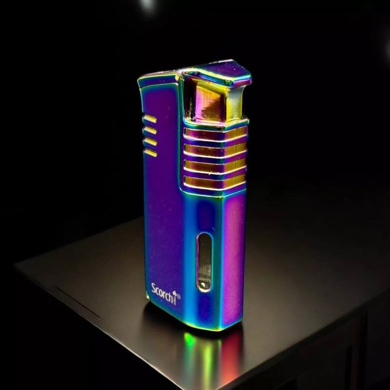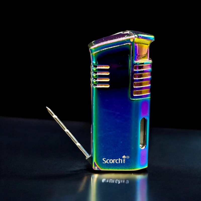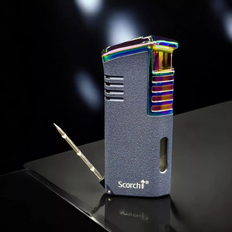 Scorch Torch Lighter Triple Flame Refillable Windproof Lighter W/ Cigar Punch - Gray-Rainbow