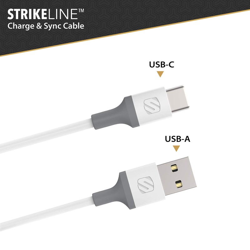 SCOSCHE CA4WG-SP Strikeline USB-A to USB-C Sync Charging Cable, 4 Feet, White/Gray