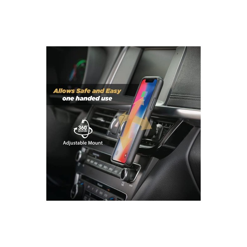 - Optimal Viewing: Rotate the 4-Axis, 360-Degree adjustable head to securely position for an optimal view from almost any angle. The car vent phone mount allows for seamless rotation between portrait and landscape orientation